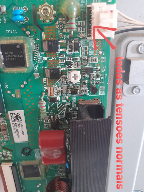 Boa tarde, gente! Estou consertando uma tv Samsung em que ela apresenta os seguintes sintomas; as barras de led funcionam corretamente somente algumas vezes, mas funcionam. Porém em muitos momentos o Backlight permanece desligado. Além disso, a tela da tv está completamente branca. Portanto são dois sintomas, a tela branca e o Backlight que liga ocasionalmente. Tirando isso a tv funciona, pois tem som. Quanto ao defeito do Backlight, eu reparei que no ci controlador dos leds (bd9397efv) existe as tensões de 19v (vcc), 0v (fail), 2,2v (PWM). E na placa t-com existem as tensões de 12v (vcc), - 6,5v (vgl), 30v (VGH), 32v (VGhf) 0v (hvaa), 3,3v (vdd33)- 7 respostas
