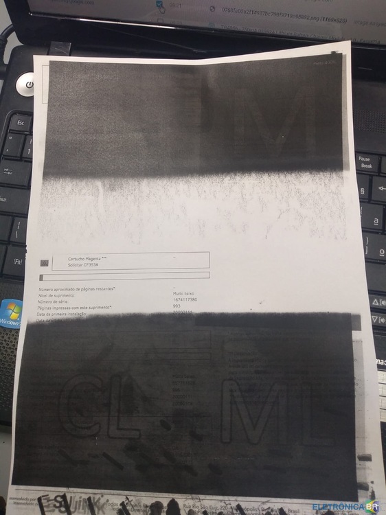 Caros srs, estou com essa HP LASERJET PRO M177FW que este imprimindo com uma falha branca na horizontal. Segue foto em anexo. Troquei toner por original, tambor de imagem e fiz uma limpeza na fita belt e não resolveu -