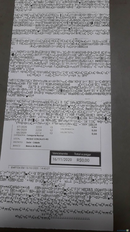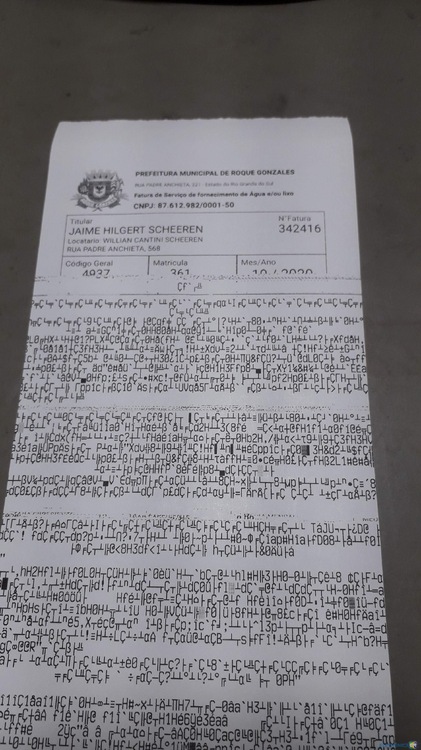 Boa tarde amigos, estou com uma impressora portátil Datecs DPP-450 que de repente começou a imprimir caracteres estranhos e a apitar quando está imprimindo. Esta é uma impressora bluetooth que recebe impressões a partir de um celular com android. Abaixo as fotos das impressões. Já diagnostiquei que não é problema no celular, pois testei com outros dois e dá o mesmo sintoma. Já tentei imprimir outros documentos também. Já resetei pro padrão de fábrica, já mexi em inúmeras configurações mas nada resolve este problema. Alguém já se deparou com este pepino, kkk? Poderiam dar alguma dica? -