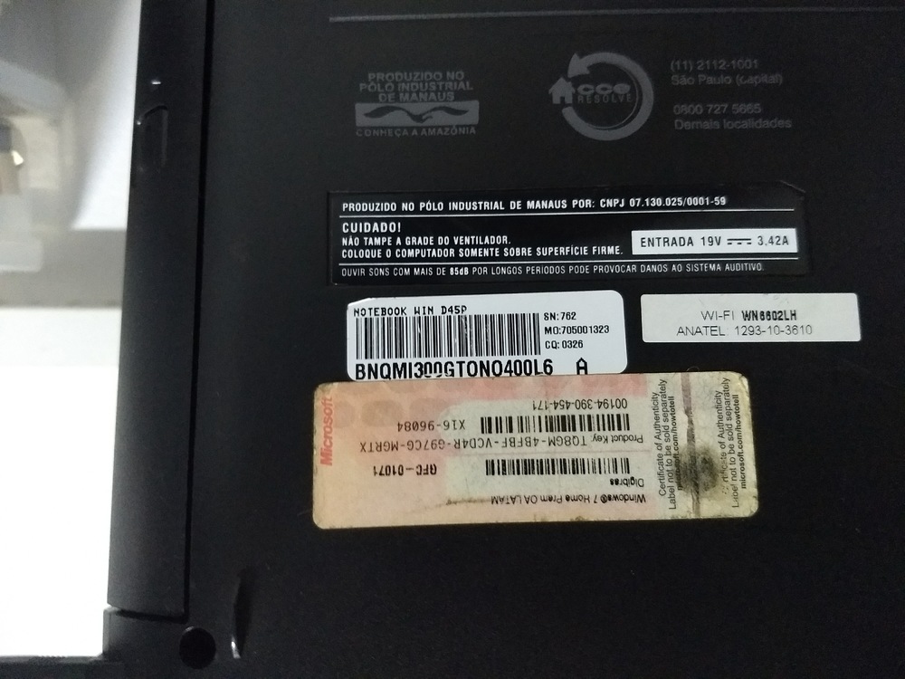 devolvido CCE win D45P - Placa AXXHMXX MB V1.0 71R-A14HMO-9H10 - Atualizar Bios