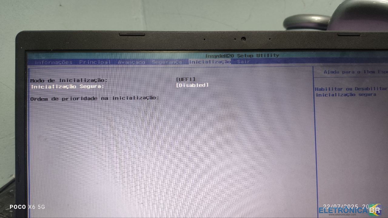 pessoal, estou com um notebook da acer aspire 3 Rizen 3 referencia a315-23 modelo da placa da0z8embc0 rev c esta com o seguinte problema: primeiramente ele chegou na bancada com o erro: no bootable device pois bem fui nas configurações e verifiquei que o UEFI estava ativado, ai fiz toda a configuração bescessaria para desativar e colocar no modo lagacy o que fiquei surpreso é que a ordem de inicialização não tem na bios sumiu. então removi a bios, gravei a mesma e ainda assim não aparece. resumindo, ele não dar boot e nem aparece a ordem de inicialização da bios. alguem ja pegou um defeito desses?