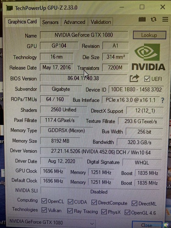 dúvida Gigabyte GTX 1080 nao roda jogos ou programas de teste