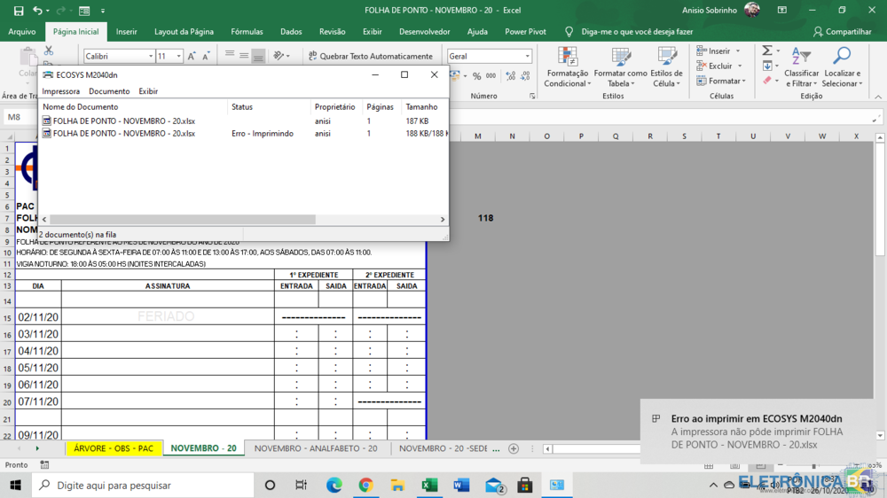 dúvida Impressora Kyocera m2040dn erro ao imprimir