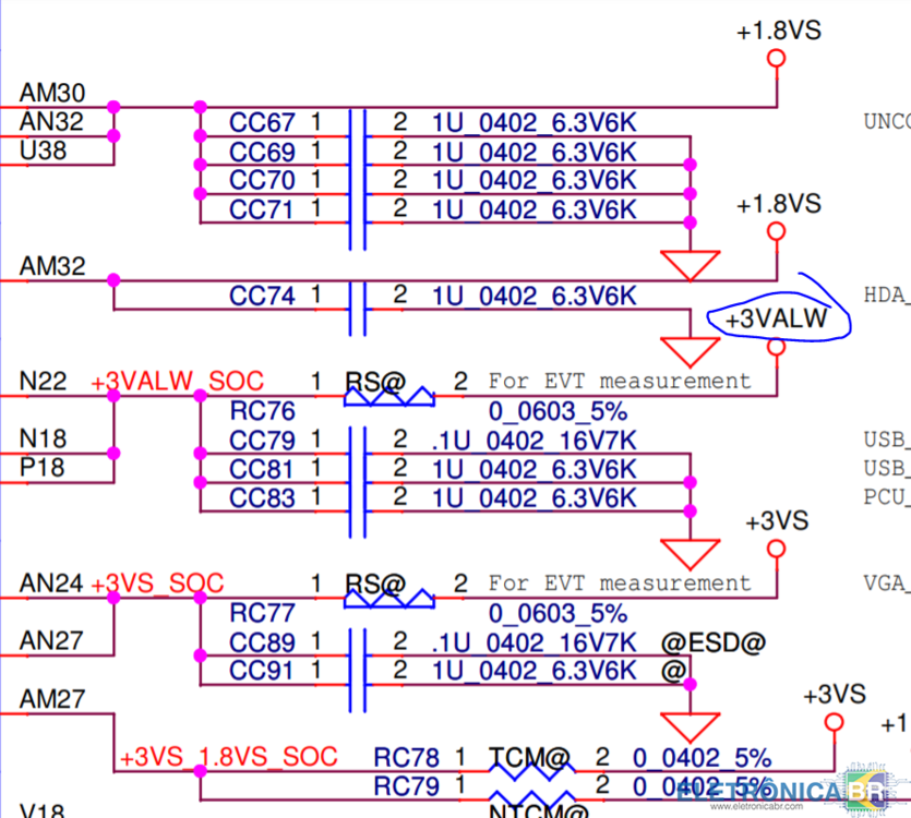 Boa noite galera. Gostaria muito de uma ajuda pois estou desanimado, é o segundo note q eu pego e acabo piorando as coisas. Estou com um Lenovo A1VP1-AIVP2 LA-C771p rev 1.0 chegou pra mim sem tensões primárias, não havia bobinas em curto. fazendo os testes, acho que acidentalmente ocasionei um curto, então a bobina do 3VALW começou a apresentar curto. removi a bobina, do lado que vai pro PWM está ok, do lado que sai o 3VALW estava em curto, então coloquei 3V na fonte assimétrica e coloquei ali, e o processador esquentou muito. Fiz o mesmo desastre com outro notebook e condenei o processador para o cliente, mas não quero fazer isso de novo. iniciei há 1 mes em reparo de placa-mãe. aguardo muito uma ajudinha. tentei isolar a linha 3VALW antes do processador, mas não encontrei o capacitor, e a placa não tem serigrafia. -