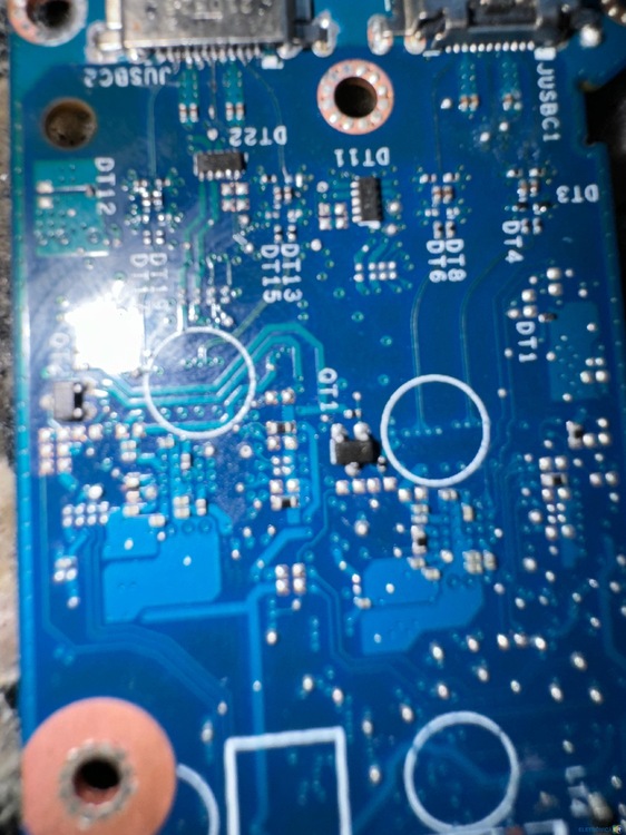 Boa noite tudo bem? bom eu estou com um problema nesse note, a ponto usb-c dele quebou uma parte dentro do conector e deu um curto na porta, e ainda tentaram trocar a fonte e colocaram polaridade invertida, queimou ate a fonte, mas eu conseguir arrumar a fonte trocando o CI dela de saida e o cabo, ja o note uma das portas usb-c carrega 100% a outra eu identifiquei um curto no controlador JHL8040R, essa placa tem dois circuitos um para cada porta, e quando troquei esse circuito ela ate foi mais logo parou, conforme a foto abaixo ali tem dois capacitores indicados que na porta que funcionar ela habilita ali 19,9v, mas na outra que não ta indo habilita so 5v ali, eu procurei teste tudo nesse circuito e não acho nada em curto, essa placa tambem nao tem esquema nem nda para poder ajudar, eu não sei o q poderia ser isso, acho que tem algum compontente q habilita para a fonte soltar os 19,9v mas não esta respondendo so que eu não sei o q seria. eu tambem preciso de ajuda por que tem q troca varios diodos de protecao da entrada o diodo seria o DESD3V3Z1BCSF https://www.diodes.com/assets/Datasheets/DESD3V3Z1BCSF.pdf mas eu nao acho, somente em site Europeu e muito caro, alguem saberia dizer algum q fosse compativel para substituir e achasse mais facil. -