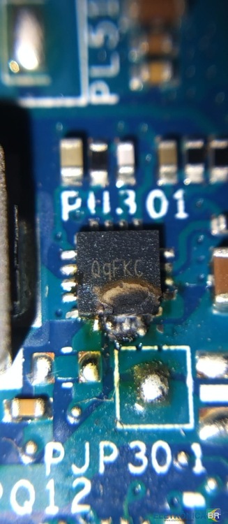 Olá a todos. Estou com esse notebook na bancada não ligando, não achei esquema elétrico dele. Encontrei esse componente em curto porém não achei nenhuma informação sobre ele. Alguem poderia ajudar? -