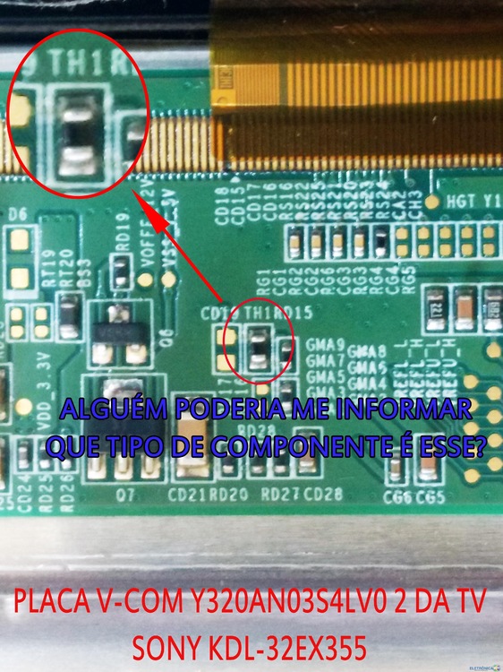 POR CONTA DE UM DESCUIDO, ACABEI PERDENDO ESSE COMPONENTE E AGORA NÃO CONSIGO IDENTIFICÁ-LO POIS NA SERIGRAFIA SÓ CONSTA TH1, ALGUÉM PODERIA ME AJUDAR? PLACA V-COM DA SONY KDL-32EX355. SEGUE IMAGEM...- 6 respostas