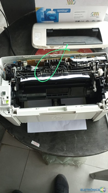 Oi, espero que o tópico atenda às regras estabelecidas. Quero pedir ajudar aos colegas sobre o defeito que está ocorrendo com essa impressora. O cliente ligou em 220v. Foi danificado o retificador e logo efetuada a substituição. Sem curtos aparentes, porém ao ligar houveram algumas tentativas de acionamento e um estouro. O NTC explodiu. Observei que dois dos cabos flats estavam muito amassados ( o que vai para o laser e o outro que vai para placa lateral com o switch de porta ). Trocado o NTC e feito novos cabos com um reserva, não apresentou mais problemas. Ela liga, aciona, libera os 24 e 3v os quais pude medir, mas ao imprimir sai umas faixa finas na borda de ataque e lateral mas sem nenhum caractere impresso. Não sei se pode ser os cabos porque está ligando sem erros, o qual aparecem se desconectar os mesmos. Estou sem idéias no momento. Alguem teria passado por algo parecido anteriormente que possa dar alguma dica ? Estava tudo funcionando antes de ligar nos 220v. Conferi os aterramentos e aparentemente estão normais. -