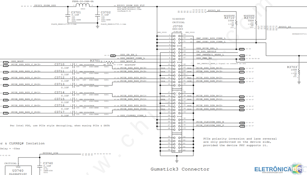 Ola a todos, estou com este macbook que inicialmente apresentava sintomas de ausência do backlight, fiz o reparo do setor trocando o ci responsável (u7701) e consegui ter o equipamento dando imagem com backlight operacional, porem ai vi que também não esta detectando o SSD original que vai no slot PCI da placa, peguei outro SSD e vi que não é a unidade de armazenamento e sim a placa. A questão agora é o que fazer para voltar a funcionar o slot (J3700) do SSD ? Já conferi a presença dos capacitores das linhas c3710 ao c3717 e estão todos ok, já conferi a tensão de alimentação do ssd (PPV3V3_S0SW_SSD_FLT) e esta ok e presente, já conferi também o SSD_RESET_CONN_L vindo do u3740 pino 4 e esta ok e presente, e também testei o WIFI no modo de seleção de disco e a placa wifi funciona, apenas o SSD não. Qualquer ideia do que testar ou fazer, estou apto a tentar.- 11 respostas