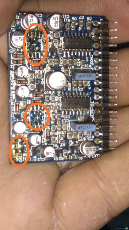 galera, tenho esse modulo dito acima, chegou com os canais queimados troquei as saidas e funcionou, agora ele retornou novamente sem som, mas as saidas estão boas, oque será o defeito? -