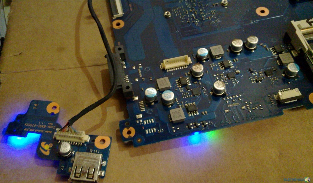 Estou com este notebook para manutenção. O cliente relatou, que, enquanto o usava, ouviu um som semelhante a um estalo de arco voltaico, e, após isso, a imagem na tela ficou branca; ou seja, sem imagem ficando somente uma tela branca.