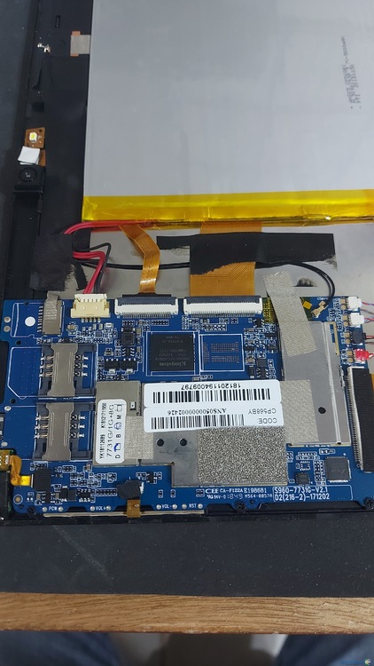 Prezados, boa tarde. Tenho um tablet Multilaser M10a Lite que pertencia a minha filha. O aparelho não dá sinal de vida e não carrega. Desmontei-o e usei o procedimento de ligar a bateria diretamente ao carregador, monitorando a tensão injetada com multímetro. Ao atingir 5 volts, desfiz o esquema e o tablet ligou. No entanto, ato contínuo, notei um componente esquentando demais (e por consequência se tornando um consumidor de energia que impede o carregamento normal). Quando o citado componente esquenta, a tela começa a piscar rápida e repetidamente. Com o tablet desligado, o ícone de carregamento é exibido, mesmo sem haver carregador conectado, mas a carga mostrada por óbvio diminui. O componente em questão fica localizado próximo ao botão power (conforme fotos). Peço desculpas desde já pelos termos leigos, mas infelizmente não consegui socorro de técnicos na minha localidade (ao que parece é difícil encontrar o esquema da placa e a própria placa para vender) e resolvi tentar algo. Muito obrigado!