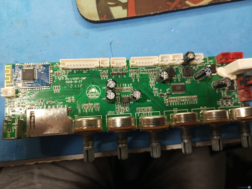 Olá amigos do br estou com esta caixa onde verifiquei a fonte está ok,os on,off ok resistor de 2 ohms ok regulador 5v saída ok bateria desconectada,capacitor e1 com 43v havia encontrado um curto no c23 vou destacar na foto, já não sei o que medir ...com esquema já é difícil pelo menos para mim,imagina sem e é minha primeira caixa deste porte...por enquanto só a luz de bateria fica acesa fora esta ,não tenhoais nada....e de acordo com dicas no you tube todos São.....ou regulador ou resistor de 2 ohms ou chaves liga,ou capacitor estufado.....se poderem me ajudar agradeço obrigado! -