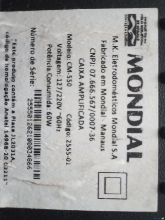 em análise Caixa bluetooth marca mundial modeloCM 550 somente com luz de carga