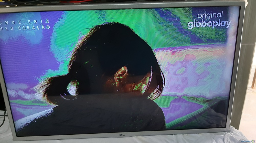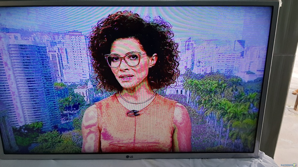 TV LG 32LJ600B com tela de led. LJ7 Chassis Estou com uma TV LG 32LJ600B que estava com imagem azul. Retirei a tela e substituir as barras de leds por novas com leds brancos. Depois a imagem ficou conforme as fotos abaixo. Não se classifica como imagem negativa. A TV possui apenas uma placa. Encontrei algumas dicas no Youtube para limpar o flex entre a placa principal e a tela. Seria defeito na tela? A tela Alguma dica para solucionar o problema? -