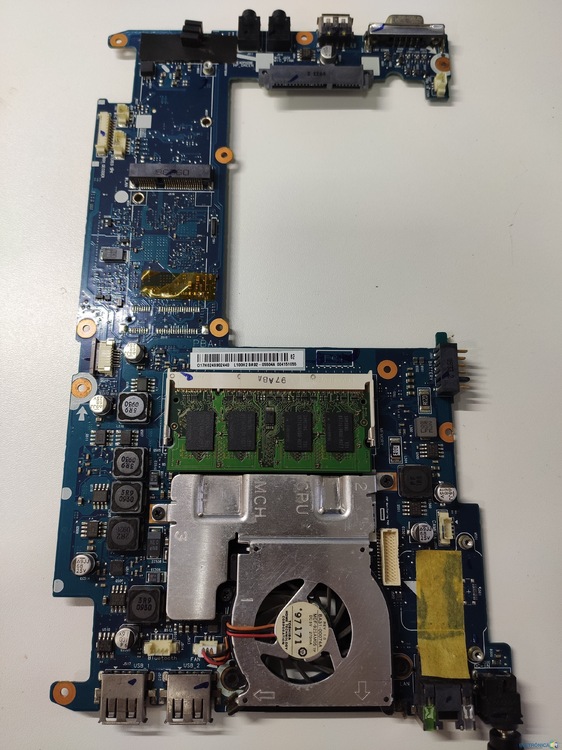 Bom dia, chegou esse netbook samsung NP-N110 tbm conhecido como "NP-NC10" placa mãe modelo winchester-r rev 1.c BA41-01052A, com o problema de ligar e não aparecer imagem. Todas as tensões estão presentes, ao pressionar o botão power, os leds acendem, cpu e pn aquecem, fan gira. Medido consumo apenas com a placa sem tela e hd na fonte de bancada ele parte com 0.39A e estabiliza em 0.34A @19.3v. Já testei outra memoria e regravei a bios main. -