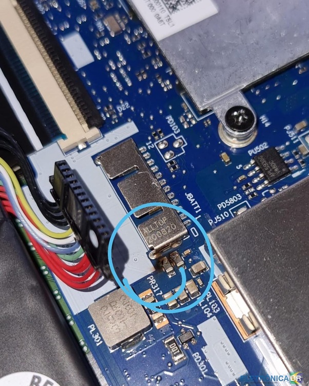 Recebi um notebook que o antigo dono gerou um curto circuito com a ponta de prova do multimetro, curto esse que visualmente danificou 2 componentes, acontece que não há descrição da posição na placa para que eu possa identificar no esquema elétrico. -