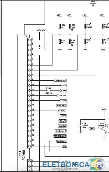 Bom dia. Alguém teria o esquema da placa do nobreak SMS net station mst1200s. O código da placa é PCIV 008900. Não está carregando as baterias. As baterias são novas. Encontrei um resistor queimado (aberto), mas não posso identificá-lo. O resto funciona bem. Obrigado. -