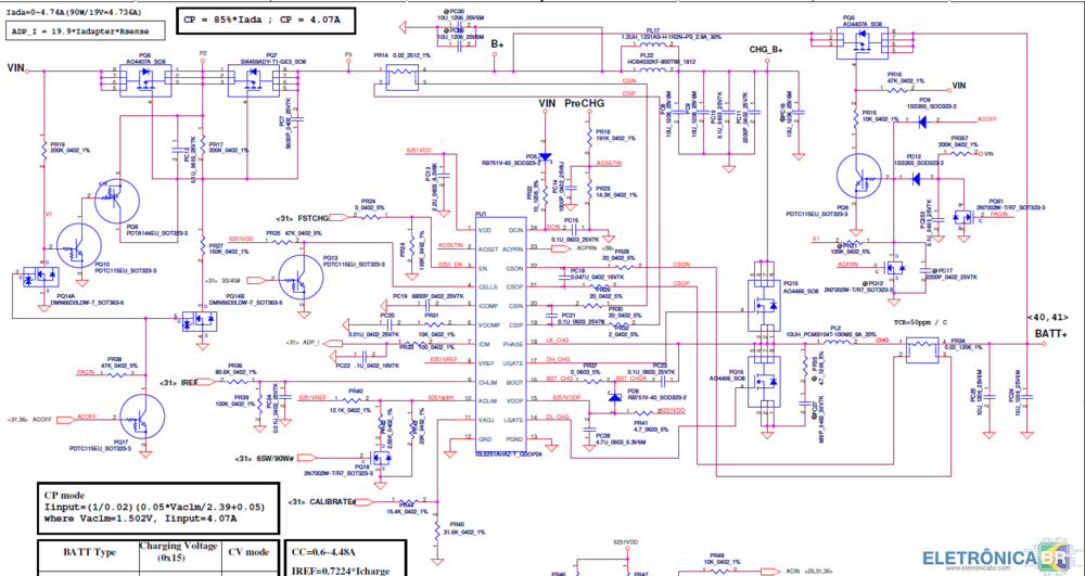 Olá, Pessoal, estou precisando de uma força para esta resolução... Estou com uma notebook para reparo onde inicialmente estava apresentando o defeito de não carregar a bateria (Ficava piscando o LED de carregamento), fiz a troca da CI PU1 e a bateria está carregando normalmente, porém, se seu ligar o equipamento com o carregador desconectado (Apenas na bateria), no sistema operacional apresenta apenas um alerta que a bateria precisa ser carregada (Mesmo estando com 80%) e não acende o LED de carregamento quando conectado o carregador (Depois de ligado o notebook). Agora se eu ligar o notebook com o carregador conectado, funciona normalmente. Todas as tensões foram tiradas sem startar a placa. Tensões no conector da Bateria (PJP2) equipamento desligado sem bateria: GND - GND GND - GND 6 - 3.30v 5 - 3.30v 4 - 3.30v 3 - 0v 2 - 0.60v 1 - 0.60v Tensões no conector da Bateria (PJP2) equipamento desligado com bateria: GND - GND GND - GND 6 - 3.30v 5 - 3.30v 4 - 2v 3 - 0v 2 - 12.52v 1 - 12.52v Tensões na CI PU1 com a bateria e carregador conectados. Agradeço desde já!
