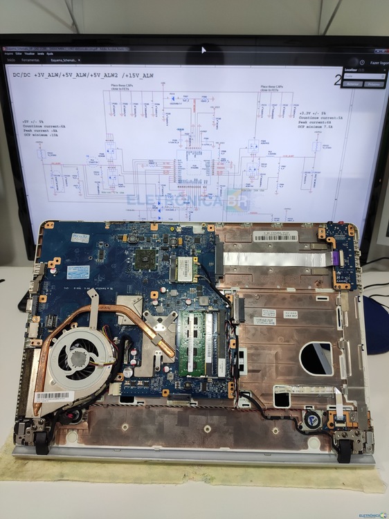 Amigos estou com esse sony vaio PCG-61611X, ele chegou com o problema ligava sem imagem e desligava. Ao abrir notei uma oxidação perto da PN, fiz a limpeza, e fui testar novamente, porem ele ja não ligava mais quando pressionado botão power, fui medir as tensões, e só tinha 3.3v os 5v só aparecia quando apertava o power, mas não acontece nada, as outras tensões não apareceram. Apos dar power se passa algo entorno de 1 minuto o notebook liga sozinho, aparece todas as tensões, os leds verde piscam e o botão power tb ascende o led verde. porem nada de imagem, testei monitor externo nada tbm. Curioso quando eu tirei a memoria e coloquei de novo o note ligou normalmente uma vez e ficou ligado como se tivesse funcionando normalmente, mas apos desligar já não ligou mais. Já regravei a bios, troquei a eprom e nada.- 35 respostas