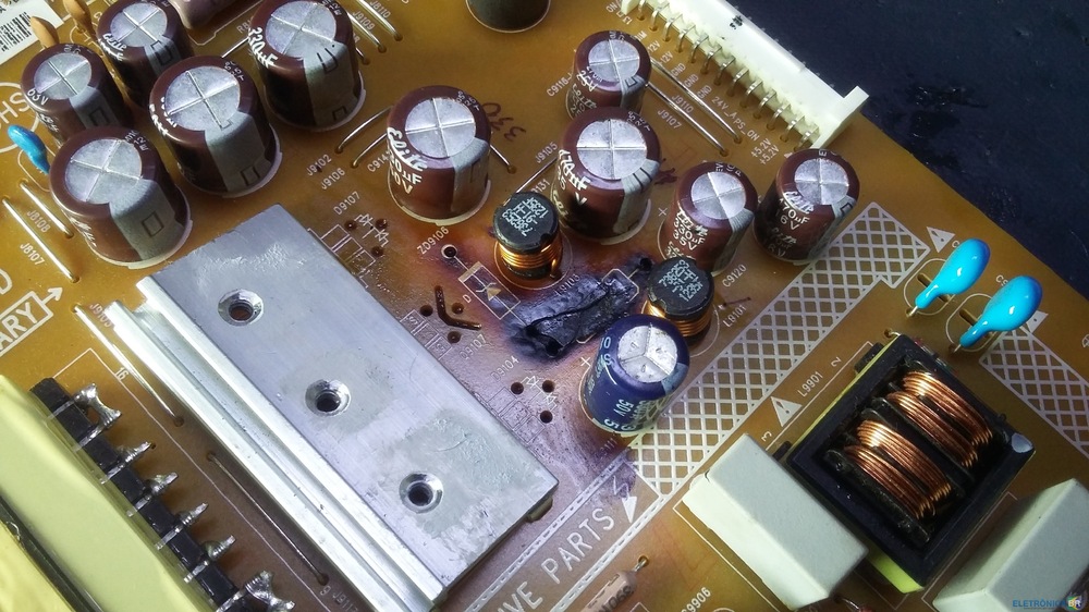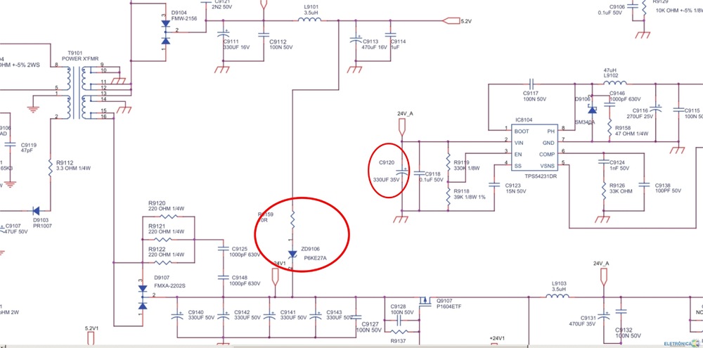 Bom dia nobres amigos da EBR. Na bancada a referida TV que chegou totalmente inoperante. Parte da fonte secundária estava carbonizada, com destaque para o resistor R9159/10R e o diodo ZD9106/P6KE27A, extremamente danificados.Também foram substituídos capacitor eletrolítico C9111 330uF/16V e o capacitor smd em paralelo a ele de 100nF/50V. Ainda capacitor eletrolítico C9120 330uF/35V. As tensões da fonte normalizaram, mas a TV não voltou a funcionar. Quando conectada à placa principal as tensões são as seguintes: 12V- ok 24V- ok PS_ON- Está com 3V 5.2V- ok A tensão de 5.2V não baixa mesmo quando está conectada à placa principal. Ainda assim, a TV não liga nem mesmo o led stand-by. Muitíssimo obrigado àqueles que se dispuserem a ajudar!- 5 respostas