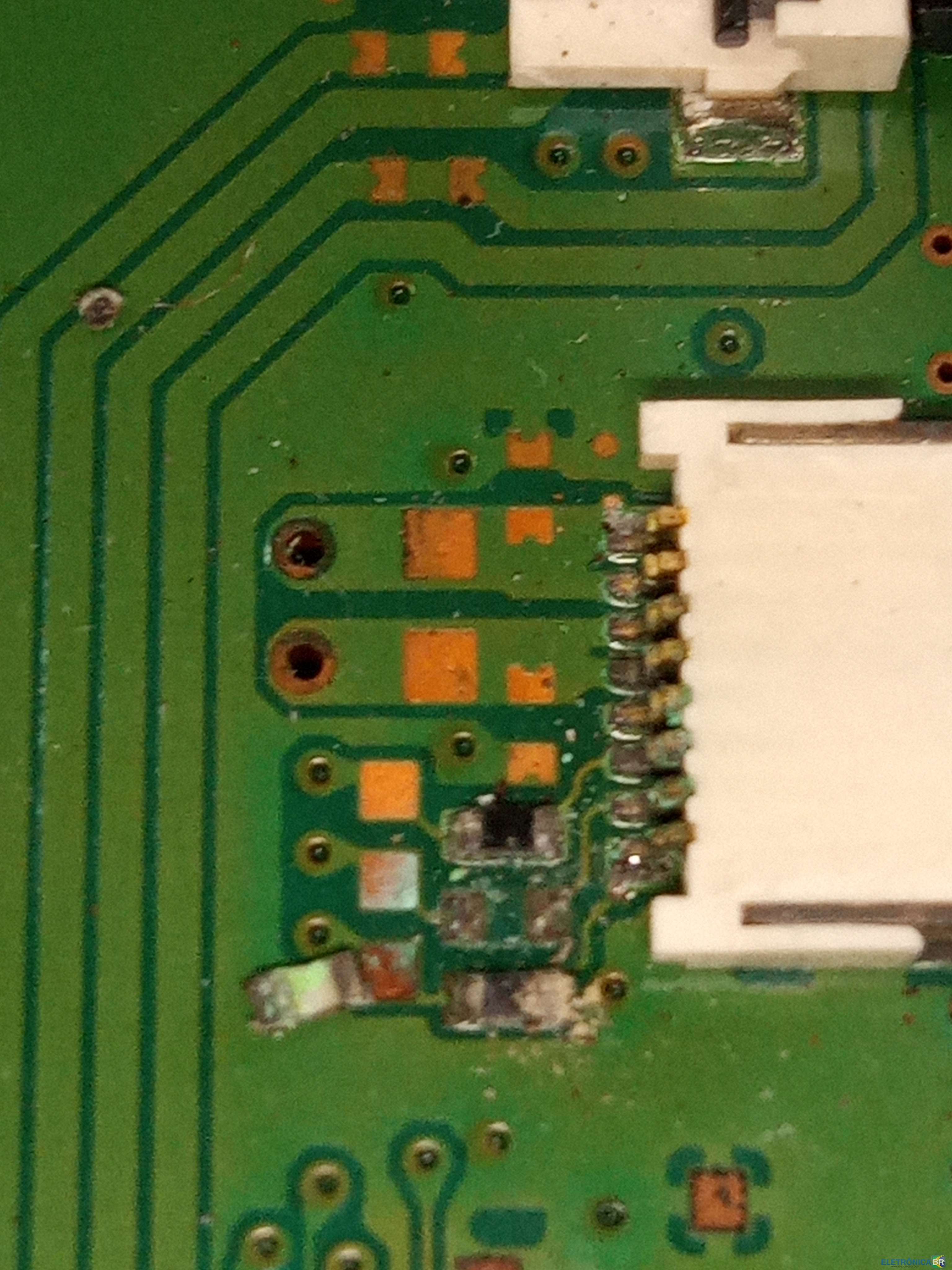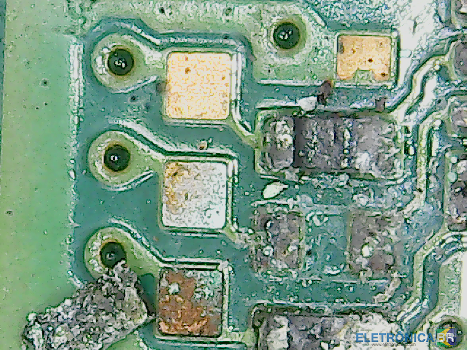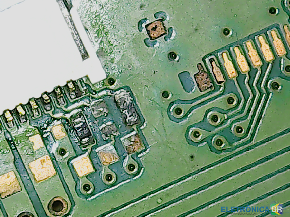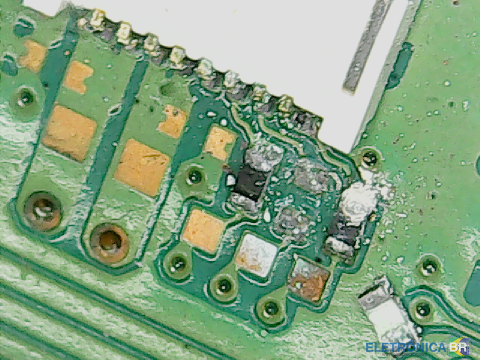 Olá pessoal, tudo certo? Tenho um PS4 Pro (placa-mãe MVA-001) que não está puxando o disco. Já verifiquei os fusíveis do drive e todos estão OK. O chip Renesas também parece funcionar normalmente, pois o console atualiza o firmware sem problemas. Notei que a base do conector que alimenta o motor que puxa o disco estava oxidada. Ao limpar e mexer com uma agulha, o componente SMD do meio saiu com certa facilidade. Fiz a medição e desconfio que sejam resistores; obtive aproximadamente 100 ohms na medição. Segue imagem da região (componente removido e outros próximos). Alguém poderia me ajudar a identificar exatamente que componentes são esses e se podem estar relacionados ao defeito no drive? O componente que saiu tem um lado preto e o de baixo branco. Agradeço qualquer orientação! InShot_20250812_102200273.mp4 -