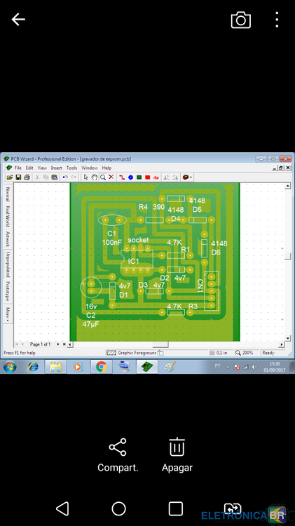 Ola a todos. Venho atraves deste mostrar o aprimoramento do desenho da placa do programador de pic eeprom serial bios (flash sip dip8) pic avr sede eeprons microwired e etc . Venho trazer a placa corrigida onde no modelo anterior do projeto estava faltando um pedaço de trilha que leva o pino central do transistor regulador lm7805 a terra . entao este e outro que fiz baseado no esquema do projeto original do site lancos de claudio lanconeli. Espero ajudar estou disposto a prosseguir o projeto e aprimorar o software para que possa suportar novos dispositivos. By uk. Software de programaçao busque no google por ponyprog2000 -