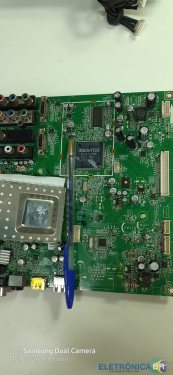 Nesta tv do título tópico o defeito simplesmente era C525 C527 10uf/16v metalicos smd incapacitados, alta esr, causando sintomas de ruídos no falante ou nao ligar, se desligar. Ficam embaixo do isolamento metalico do processador. Esta placa não tinha C531 e C530 que costumam dar defeito. Relé K1 gosta de dar mau contato também, tv arma relé mas não liga. Uma dica que para alguns pode ser do conhecimento já mas eu sempre esqueço como funciona, na etapa do STBY e PS-ON: - desligando tv pelo teclado ficará com stby led vermelho apagado, pressionado liga tv acende led branco - desligando pelo teclado não liga pelo c.r. - desligando pelo c.r. fica led vermelho aceso mas só liga pelo c.r. ou se pressionar power teclado só liga e desliga stby led. Em outra tv igual que consertei um defeito na alimentação 5v usb e com mensagem SW Corrupted(se não me engano intermitente essa msg) encontrei um defeito bem a toa mesmo: as vezes backlight não ligava e ccfl bom. Resistor R453 1k que leva 5volts para o BL_on media bom mas não passava 5v nele, ressoldei e funcionou, na duvida troquei por um maior, é muito pequeno o original.- 2 respostas