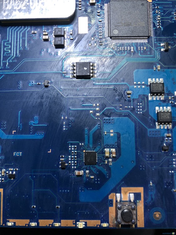 Boa tarde pessoal. Estou com esse notebook na bancada que não liga, consumo travado em 0.18. Um ci regulador esquenta, capacitores a volta em curto, porém defeito não é ci nem capacitores a volta. Alguém já pegou algo parecido? -