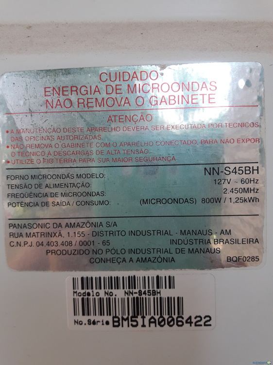 Forno de microondas da marca Panasonic modelo NN S45BH.
