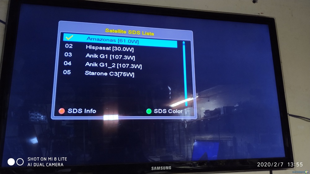 Estou com dois Azamerica s1009 plus Gravei a Eeprom, e, depois quando fui testar observei que o primeiro tem no sds 7 satélites(opções de satélite sds) E no outro aparelho, não tem a mesma quantidade. Só tem esses que aparece na imagem! Porque será, que não tem os mesmos satélites que o outro receptor? Sendo que... Gravei o mesmo arquivo e feito a mesma atualização!? O satélite que preciso, que apareça na opção sds, é o 63w. Desde já agradeço aos amigos que me ajudarem a entender...! -