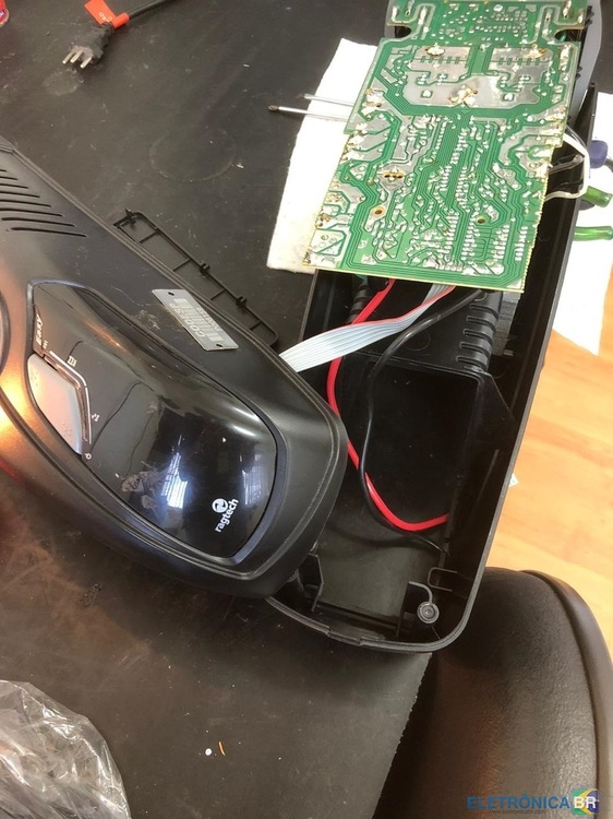 Aparelho chegou para conserto com o diagnóstico de bateria descarregada, o que foi constatado de inicio. Após a substituição por bateria nova e testada, o mesmo passou a funcionar normalmente em teste por algum tempo, porém sua bateria nova descarregou por completo novamente a ponto de não permitir religá-lo. O equipamento foi aberto na bancada e após uma inspeção visual encontrei o resistor (R36A), trincado no seu revestimento de porcelana, e ao testá-lo constatei que apresentava resistência infinita ao invés do seu valor original de 1.0 Ohm. Analisando o circuito efetuei mais alguns testes dos componentes interligados a este, foi quando encontrei o transistor FET (M5), IRLZ34N que apresentava curto-circuito entre seus terminais Gate, Dreno e Source. Seguindo a diante nos testes encontrei também o diodo Zener (Z9), BZX55C5V6, diodo de 5V, que estava polarizado em paralelo com o resistor (R52), este apresentava-se com sua junção danificada e precisou ser removido para comprovação do seu estado. O transistor FET IRLZ34N (M5), foi substituído por um equivalente sugerido pela pesquisa efetuada na tabela de equivalências, que no caso foi o IRF3205. O diodo Zener (Z9), foi substituído por outro com as mesmas características 5V/400mW e o resistor (R36A), por dois resistores associados em série, com valores de 0.47 Ohms/5W, totalizando aproximadamente 1.0 Ohm (acima descrito) demonstrada no corpo do resistor danificado. Após concluídas todas as substituições e a montagem do aparelho, o mesmo foi submetido a testes que comprovaram o carregamento da bateria através do acompanhamento com o voltímetro do aumento gradual da tensão de carga e estabilização próximo dos 14V. O aparelho ficou em testes durante várias horas apresentando funcionamento normal.