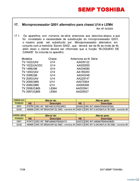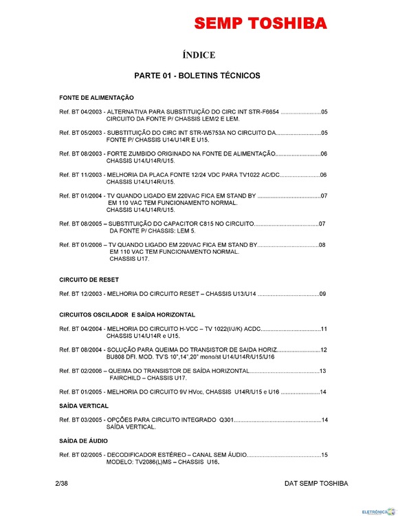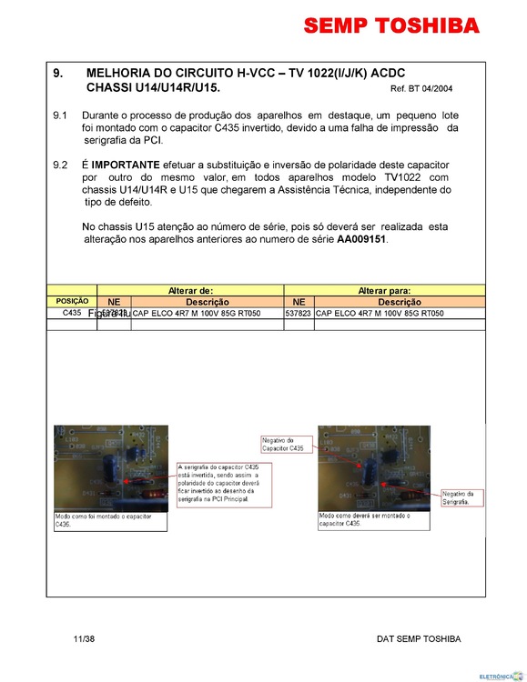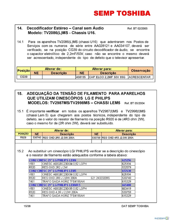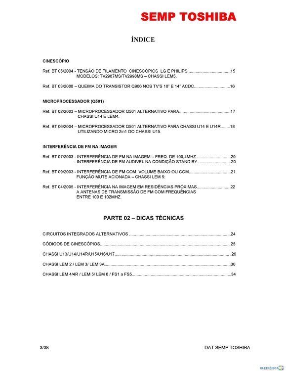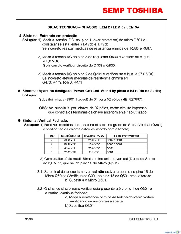 tutorial Boletins e Dicas Técnicas de TVs de CRT - SEMP TOSHIBA