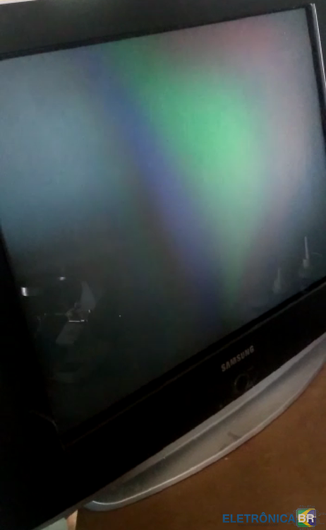 Olá bom dia a todos, estou com esta tv Samsung tubo 29 polegadas modelo CL-29Z50MQ. Chegou até min funcionando, apenas com listras verdes na parte superior da tela, então após análises troquei o capacitor de 100/50 então a mesma voltou ao normal, deixando-a em teste no dia seguinte a mesma apresentou efeito almofada, removi todos os capacitores de largura um a um e testei os mesmos com capacímetro, porém não encontrei nada de errado em nenhum deles. Depois ela simplesmente não deu mais imagem.... Ficando apenas assim...liga toca a musiquinha mas não dá imagem. Já troquei um transistor que fica na parte da frente da placa, não encontrei igual original então pus um IRF630 que deu no lugar pois pesquisando mais a fundo encontrei colegas que tiveram problema de efeito almofada ou até mesmo ela não ligar e era aquele transistor. Porém no meu caso não obtive sussesso. Espero poder solucionar mais este problema com a ajuda dos amigos aqui presentes... Segue abaixo a foto da tv ligada.... quando aumento o screen a tela ascende assim. ---------------------------------------------------------------------------------------------- Boa noite novamente amigos, finalmente consegui o transistor LA78045 pus no lugar e finalmente todas as tenções voltaram ao normal e a tv ligou... Agradeço demais a todos que me ajudaram, muito obrigado mesmo, @ohm @Emerson1983 @Fareis @claudiomc @Multimarcas. -