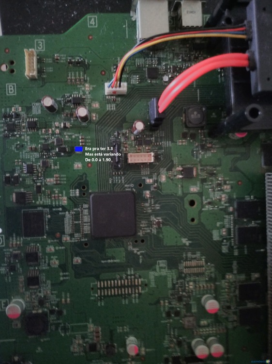 Olá, tenho esse xbox em casa por quanto tempo quiser e gostaria de arrumá-lo eu mesmo com ajuda de vocês. Eu sei soldar componentes, tenho multímetro; Mas não sei muito sobre achar componente ruim. Eu imagino que não tenha curto pois o xbox raramente consegue ligar; pois a tensão de 3.3v fica certinha sozinha Mas na maioria das vezes ela varia de 0.80v, algumas vezes sobe pra 1.60v e fica segurando assim por um tempo. Se precisar eu faço mais medições e deixo na foto certinho pra vocês acharem o problema Vai ser quase um jogo kkkk, quem puder ajudar eu agradeço. -