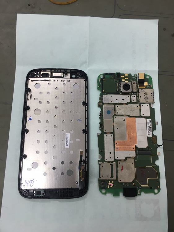 Esse procedimento serve para efetuar reparos em placa e também para trocar a tela (frontal) do aparelho. Passo 1, retire a tampa traseira do aparelho: Passo 2, desparafuse os 14 parafusos apontados pelas setas laranja e os retire: Passo 3, insira uma espatula entre o aro da traseira e frontal, para retirar a tampa traseira. Prefiro começar pelo conector de chip pois é mais fácil o acesso: Passo 4, retire a tampa por completo, nesse passo ela é apenas encaixada: Passo 5, desconecte o flex da bateria antes de fazer qualquer procedimento: Passo 6, retire a bateria, ela fica apenas em cima da placa, basta puxar após desconectar o flex: Passo 7: Agora vamos desconectar o flex da tela conectado a placa mãe. A trava fica acima do conector, cuidado com os capacitores logo acima pois você poderá causar problemas ao bater neles: Passo 8, nesse passo você estará tirando o flex: Passo 9, agora basta desencaixar a placa da tela: Caso vá trocar a tela, não se esqueça de passar o alto falante auricular e a borracha (em baixo) do microfone para a nova tela. -