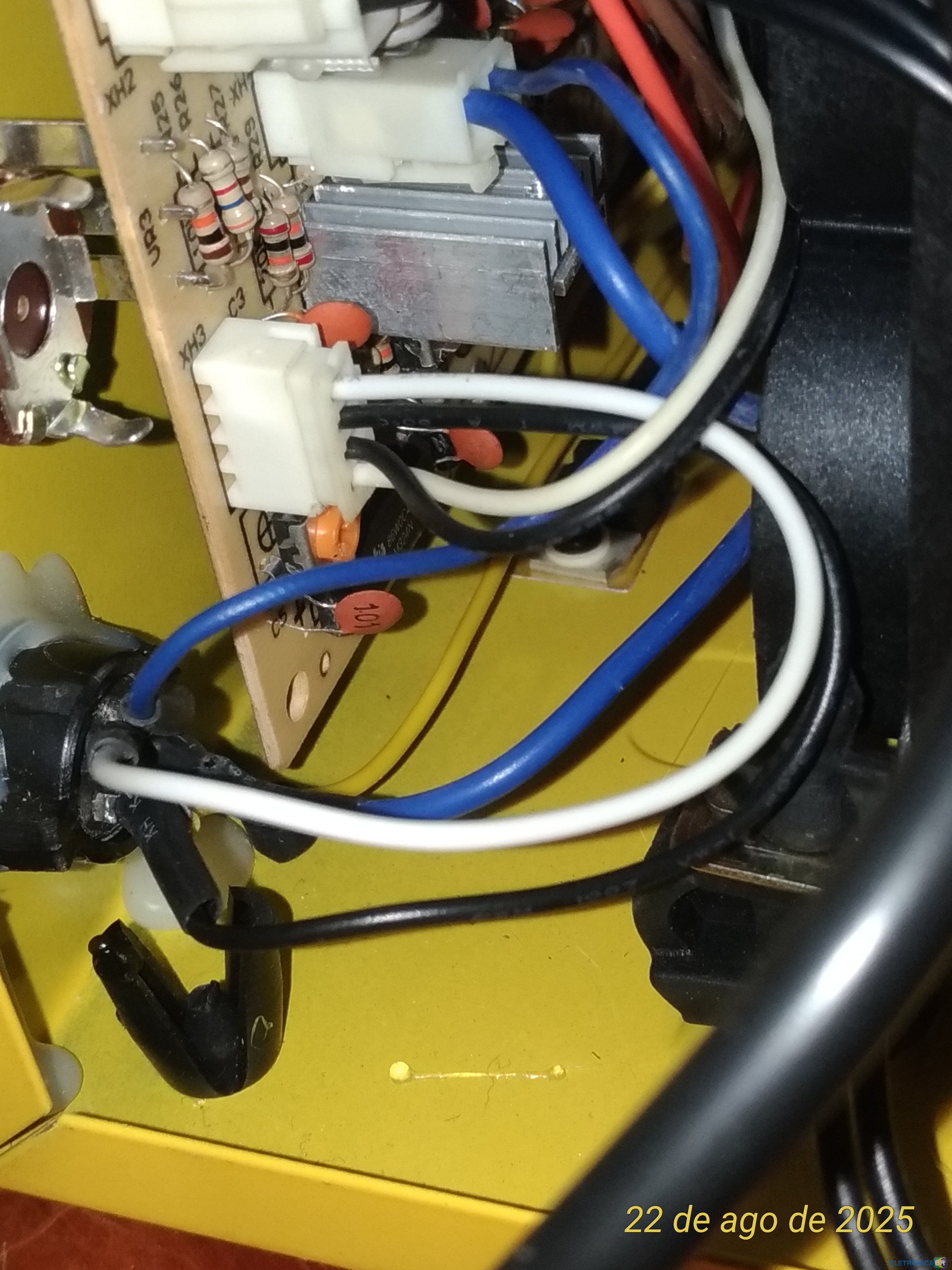 ola comprei uma yaxun 702 usada e veio faltando alguns fios e outros problemas. o problema e que nao sei onde vão os fios que saem da tomada e outro fio azul cujo estao na foto se alguem tiver uma tbm pode me ajudar com essa informaçao obg- 4 respostas